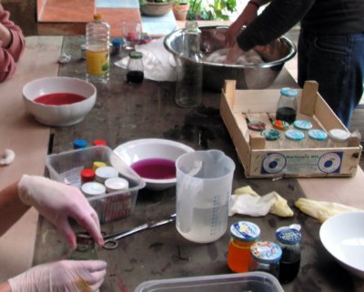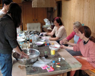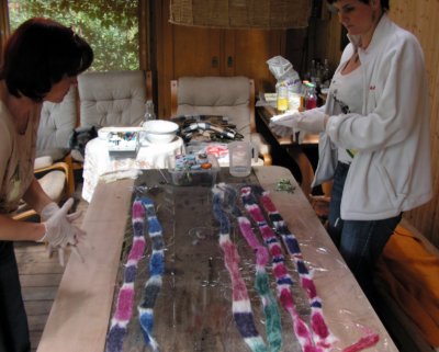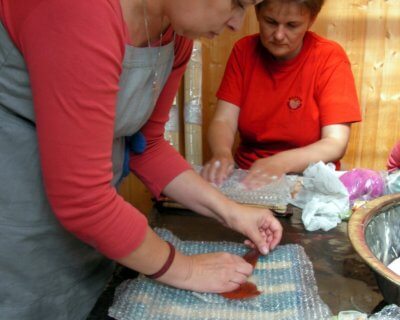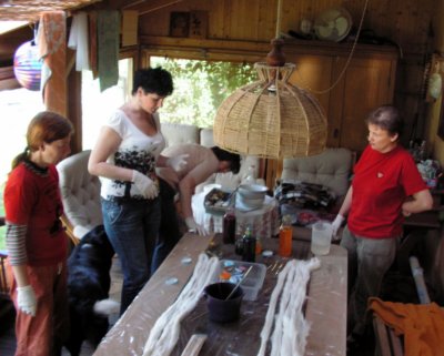 Předení, česání, barvení a plstění rouna průběhu víkendového workshopu.